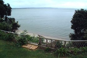 Easy steps to white sandy beach from this amazing home.
