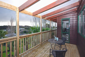 A large covered deck with an elevated outlook to the North West is perfect for dining 'al fresco' with friends and family. You'll even catch a glimpse of the Upper Harbour. The home comprises of 3 bedrooms and an office, plus storage underneath the house. A heat transfer system and alarm provide extra comfort and security.