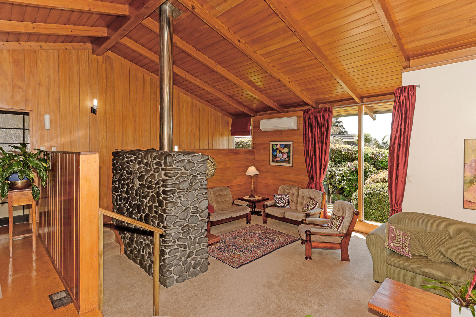 Native timber accentuates the home generating a feeling of warmth and richness while the pitched ceilings and paneled walls are a superb feature.