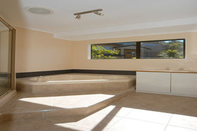 Newly carpeted, with lovely, separate bathroom, toilet, en-suite and walk-in wardrobe. The modern, open-plan kitchen flows into the living areas creating a great feeling of space, light and air. For those D.I.Y. enthusiasts, the large, double, lock-up garage incorporates a separate workshop area, or space for a boat.