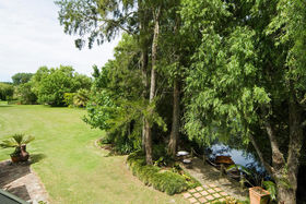Your hectic day at work will be forgotten the second you arrive home through the gated entrance of this stunning 2.020 Ha (5 acre) retreat. Stroll along the gorgeous tracks and take a seat amongst the huge Pin Oaks, Black Walnuts, Liquid Ambers, and Swamp Cypress, or row your boat gently around the Lilli pads on your own private lake. The private landing, gorgeous row boat , stone bridge and sheer romance of this environment will take your breath away. Beautifully laid vegetable patches and gardens have been thoughtfully developed over many years to provide an irreplaceable ambience that would take another twenty to thirty years to recreate. Marquee weddings have been unforgettable occasions on these lawns and the photograph opportunities are second to none. The three bedroom home with two bathrooms, two living areas and an office provides a wonderful sanctuary with its open plan living spilling outdoors to gorgeous patios and breathtaking surrounds. The fireplace, solid beams, railway sleepers and french doors are framed by flowerpots. The delightful ambience is felt throughout this property which is absolutely irreplaceable. This won't last so call me now to view. Nicky 021 754 667.