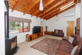 A sumptuous lounge with vaulted ceiling gives you a 'Swiss Chalet' vibe complete with a remote control gas fire and heat pump to keep you snug in the upcoming winter months. The open plan kitchen and dining features a ranch slider allowing a seamless flow onto the front deck that offers year round entertaining for family and friends.