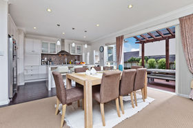 Sunny and flat land size at 557sqm, with huge floor area at 341sqm. This new home offers you 3 spacious living areas, TWO kitchens, 5 double bedrooms, study and 3.5 bathrooms including 2 masters. The spacious dining area and living with modern master family kitchen and a second kitchen is a major attraction. Plus great features as high quality appliances, gas stone fireplace, double garage with internal access which could open to both sides, and wooden floors. The gardens really are a hidden delight, great indoor/outdoor flow to extensive deck with expansive green views where will entertain your family and friends. Granny Potential guest wings on the ground floor - one master bedroom with study has its own separate entry, ideal for extended family or teens.