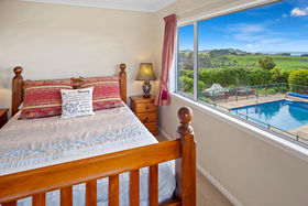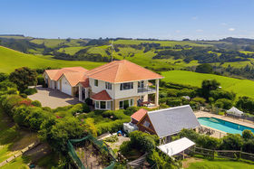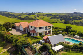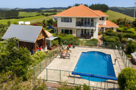 Set high on 1.5 hectares with superb views to the Kaipara Harbour, this beautifully presented home delivers the rare combination of home and income, quality craftsmanship, and a holiday at home lifestyle. Inside, thoughtful design meets everyday ease. The formal lounge offers a quiet retreat, while the generous formal dining room, finished in beautiful bamboo flooring, comfortably seats twelve for special occasions. Day to day living centres around the open plan family zone with a well appointed kitchen featuring Canadian maple cabinetry, and a coveted Falcon dual oven. Underfloor heating on the ground level, H3 timber throughout, and bespoke Redgraves drapes speak to a build where longevity and comfort were non-negotiable. A spacious office on this level adds flexibility, ideal for working from home or as a potential fourth bedroom if needed. Upstairs are two double bedrooms, a family bathroom, and a superb master suite. Generous in scale, the master enjoys a private balcony where, on still nights, you can listen to the waves rolling in at Muriwai. The ensuite is equally spacious, complete with its own bath. Connected by the triple-car garage, a separate two-bedroom minor dwelling opens the door to extended family living, guest accommodation, Airbnb or rental income - true versatility without compromising privacy. Outdoors, self-sufficiency shines. The gently contoured land blends usable grazing with established orchards and prolific plantings, everything from blueberries to pineapples is growing on site. A large pond sets the scene for resident ducks and geese, there are two great sheds for hobbies and storage, and a generator provides peace of mind when you need it. Multiple outdoor living areas are private and sheltered, so you can follow the sun, or the shade, throughout the day. When it's time to unwind, the property transforms into your personal resort: take a dip in the 9.5-metre Aqua Technics solar-heated saltwater pool, then ease into the Hot Spring spa as the sun slips away. It's an everyday escape from the hustle, right at home - yet just over an hour's drive to Auckland CBD outside of rush hour.