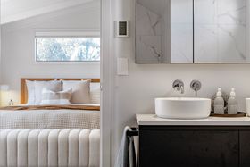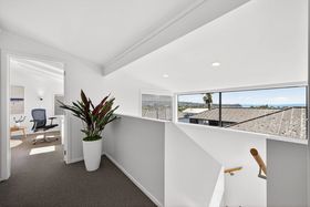 The upper level is dedicated to a generously proportioned master suite with its own ensuite, along with a large adjoining room currently used as an owner's lounge and office. From this level, the home enjoys surprisingly expansive sea views.