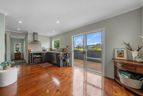 Step inside to discover a home full of charm, where native timber floors, character windows, and natural light create a warm and inviting atmosphere. The open-plan kitchen offers ample storage and flows seamlessly into the living area, complete with a cosy wood burner and heat pump. The ranch slider opens to sun-soaked decks, capturing sweeping rural views - perfect for summer entertaining.